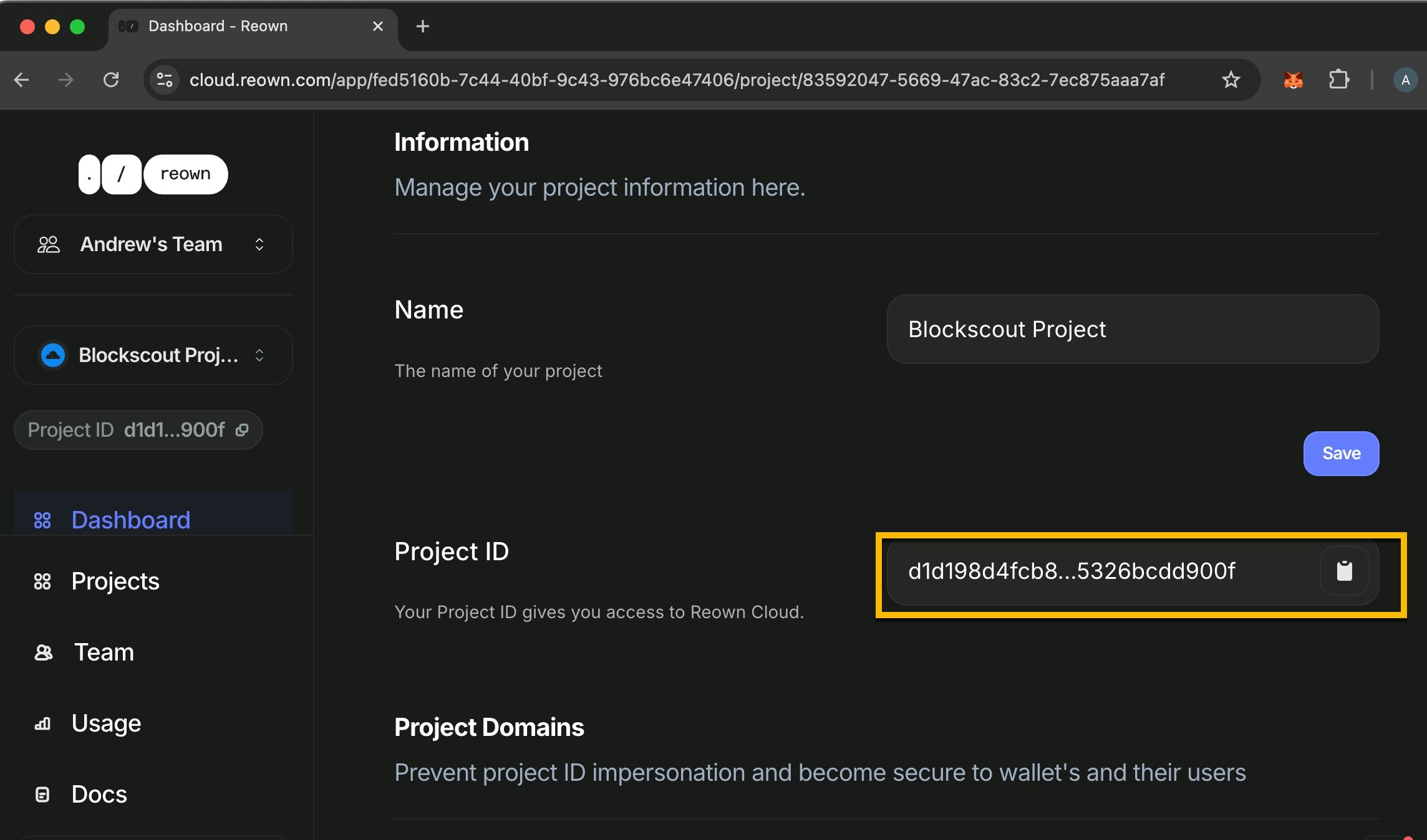 This step is important because the Project ID will be exposed in the browser. Setting allowed domains prevents unauthorized usage of your ID.